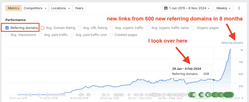 Pages that had strong backlinks (especially from DR70+ sites) but were outdated? I rewrote them.